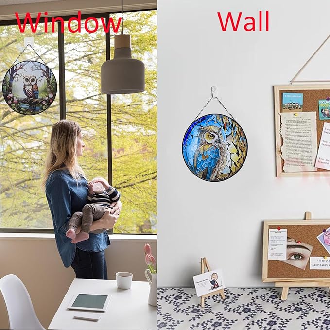- 【Exquisite Gift】The owl suncatchers for hanging stained glass is a lovely gift for your friends, family, lover, etc. Our owl wall decor would be a great embellishment to your home. Suitable for Thanksgiving Day gifts, Christmas gifts,Valentine's Day gifts, Easter gifts, Mother's Day gifts, and other holiday gifts.