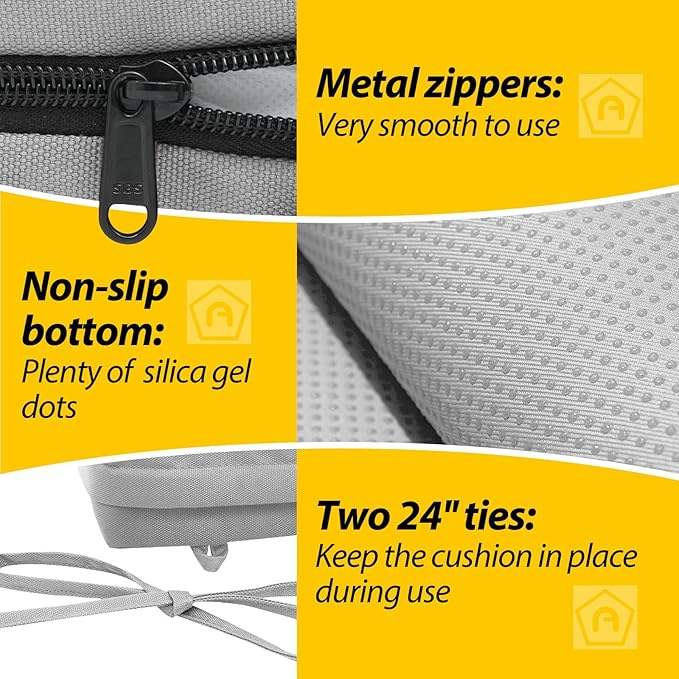 - Waterproof & Removable Cover: Durable, breathable polyester with a waterproof coating, UV protection, and fade resistance for lasting outdoor use. The zippered cover allows easy cleaning and replacement, with hidden zippers for a seamless look