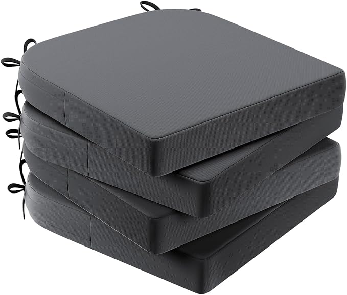 AAAAAcessories Outdoor Seat Cushions for Chairs, Waterproof, Fade-Resistant Patio Furniture Replacement Cushions, 17" x 16" x 2", Set of 4, Dark Gray