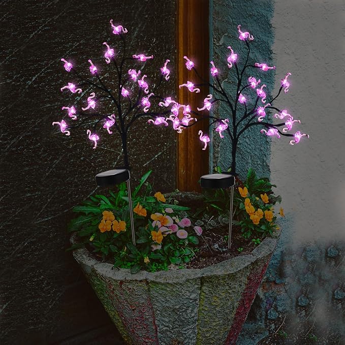 - Easy to Use and Install: these flamingo yard decorations are user friendly, thanks to their solar powered operation, there is no need for wiring or additional electricity charges; You just need to stake them into the ground where they can catch plentiful sunlight, after charging during the day, it will automatically light at night