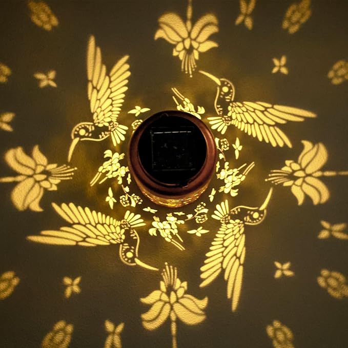 - 【GARDENING GIFT】This outdoor solar lantern hummingbird, and the light is projected on the table or ground to create a lifelike beautiful pattern, making your patio stand out. hummingbird decor lantern is perfect for garden patio, house,balcony, walkways, patios, and home decor.Makes a great Mother's Day, Father's Day, Thanksgiving, Christmas, Valentine's Day, Halloween, Wedding, New Year and Housewarming gift, birthday gifts for women mom sister friendship friends.