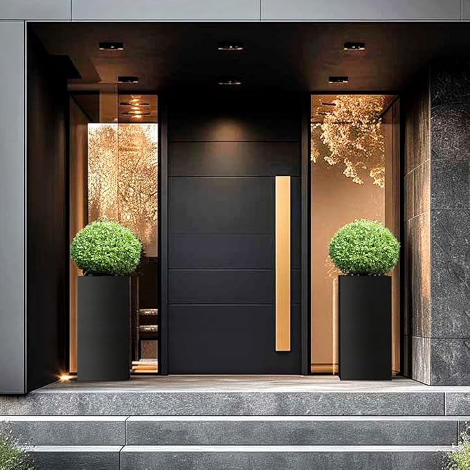 - WIDELY APPLICABLE - The black sleek metallic finish adds a touch of modern sophistication to any space, whether it's your garden, patio or living room.This tall rectangular flowerpot serves as a beautiful accent.