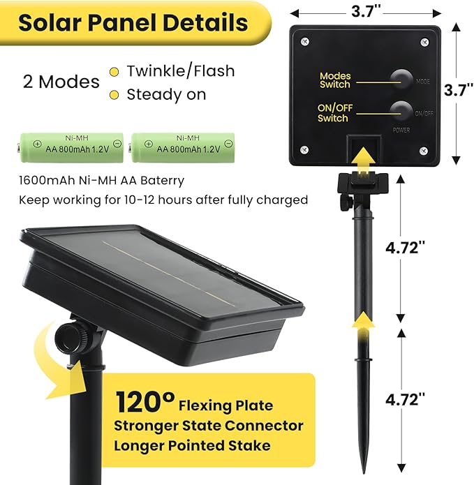 - 【Customizable Experience】Our outdoor string lights solar come equipped with a multifunctional battery box with 2 modes, allowing you to tailor the solar string light' ambiance from steady glow to mesmerizing flash. The solar light string' memory function conveniently saves your last setting, making these solar fairy lights outdoor ready to enchant without any hassle.