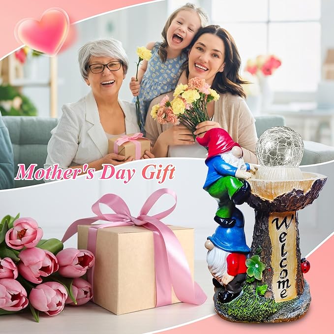 - Gnomes Gifts: Outdoor garden gnomes whether for Mother's Day, birthdays, housewarmings, anniversaries, Easter, Independence Day, Halloween, or Christmas, these solar gnomes decor for outside beautiful and unique gifts.