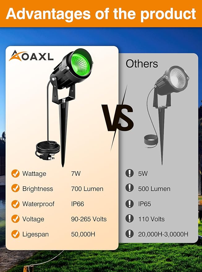 - 💎[【Ultra Bright Green Landscape Lighting] Ultra bright landscape lights with COB beads. It is lighter than normal led landscape lights which perfectly meets your normal lighting needs, Perfect for decorating your yard, trees, house, fence, wedding, Halloween, Christmas.