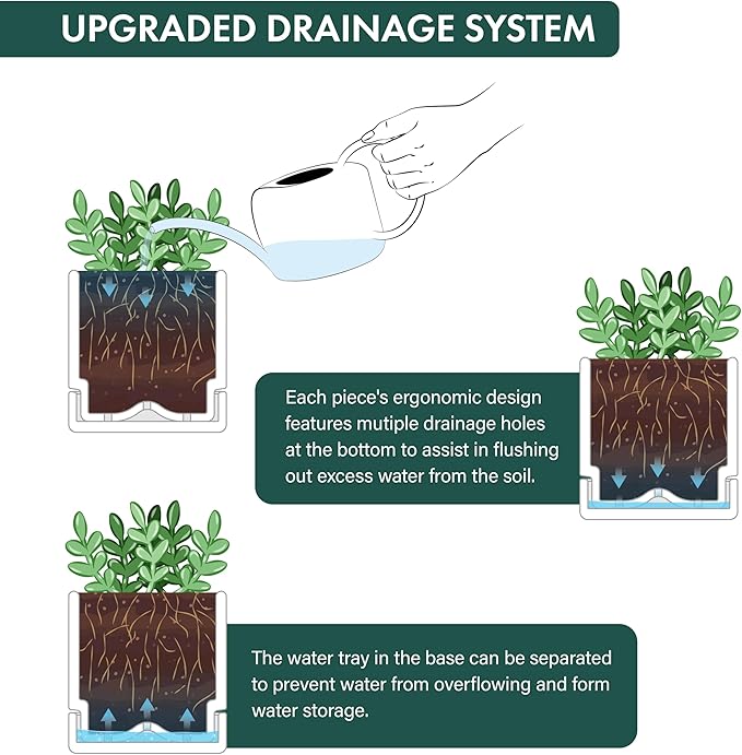 - Excellent Drainage and Tray: The pot features strategically placed drainage holes at the bottom, along with detachable saucers that fit perfectly. This ensures optimal drainage for your herbs, making it ideal for window herb gardens.