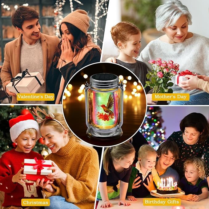 - Solar-Powered Hummingbird Lights : As dusk falls, watch as the LED lights within each lantern illuminate, casting a gentle and inviting glow across your garden. The intricate hummingbird patterns come to life, creating an enchanting ambiance that encourages you to savor the beauty of the night