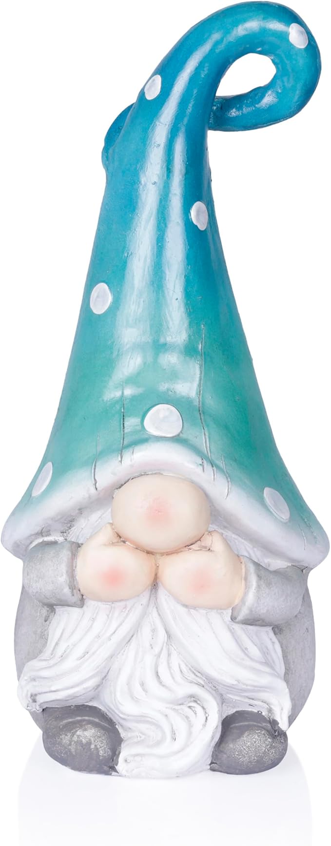 - CHARMING GARDEN GNOME: Add personality and charm to your outdoor space with this adorable gnome statue. The Speak No Evil design, paired with its friendly face and turqoise polka dot hat, brings a fun and quirky touch to any garden or patio.