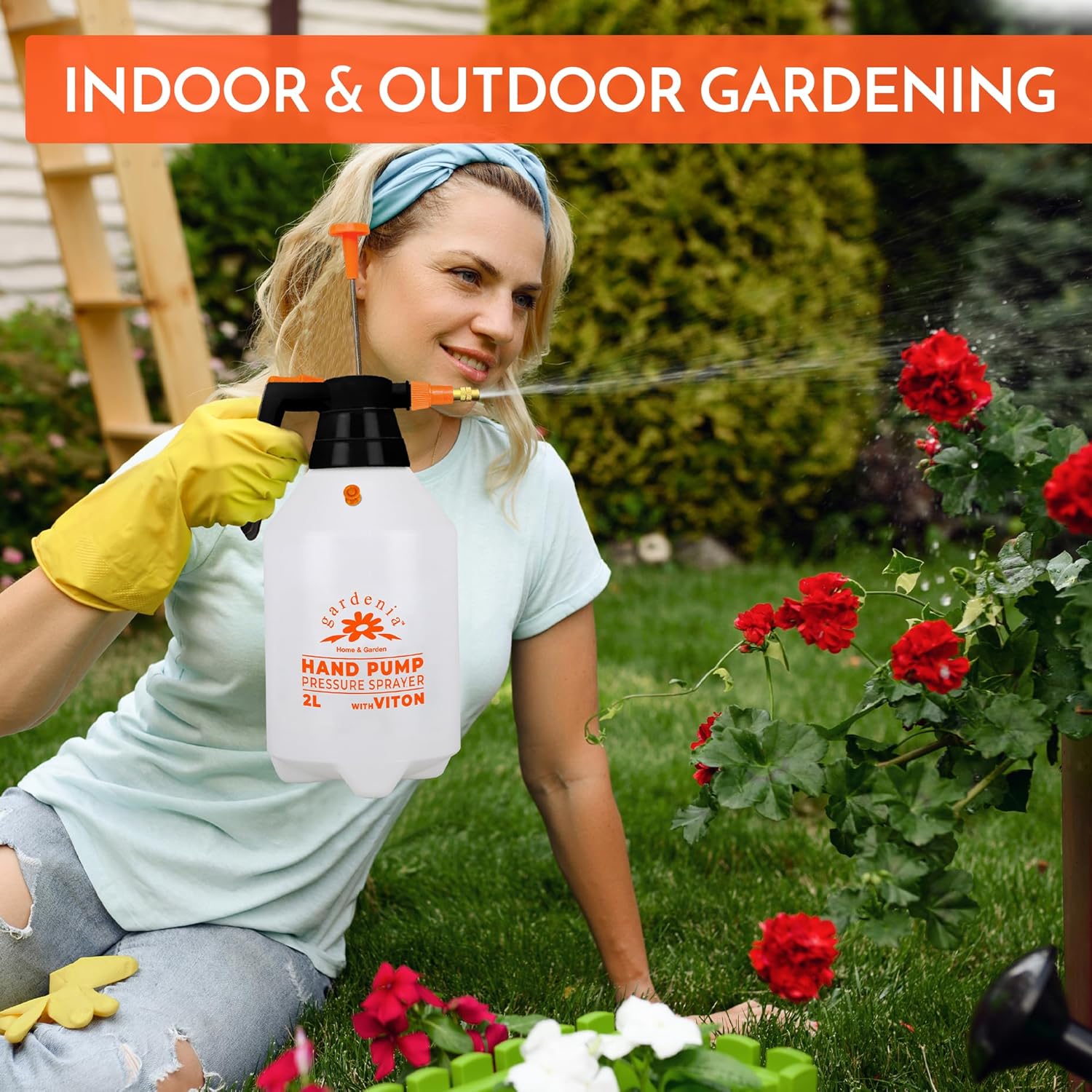 Handheld Pumping Sprayer Viton Seals Sprayers in Lawn and Garden, Spray Bottles for Cleaning Chemical Sprayer Continuous Spray Bottle for Plants 2 Pack 2L (0.53 Gal / 68oz)