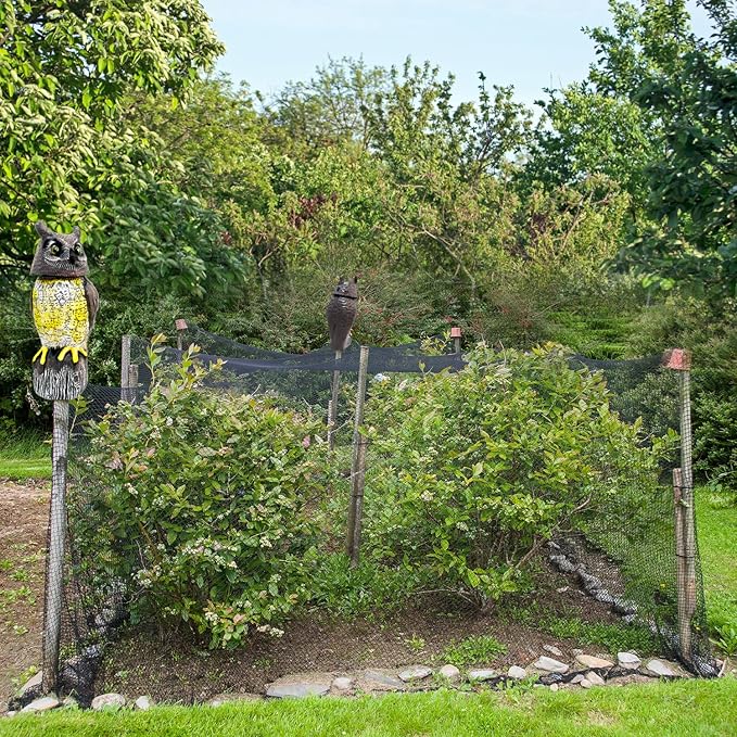 - BUILT TO LAST - Made from heavy duty PE plastic this owl scarecrow is designed to be weatherproof to effectively scare off squirrels and deter other pests from damaging your balcony or deck.