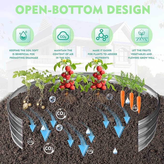 - Durable Construction: The 60 inch diameter round galvanized garden raised bed is made with strong galvanized steel material with crimped edge and corner,no sharpe, ensuring safely using it and long-lasting durability and resistance to rust