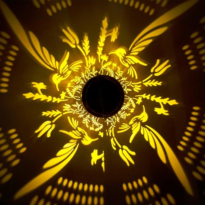 - Elegant Design: Our hummingbird solar lantern features a charming retro design with a copper coating and complex hummingbird hollow patterns,the hummingbird lanterns decorative outdoor can project exquisite patterns in dark environments and creating a unique artistic effect.Size:4.7''W x6.9''H