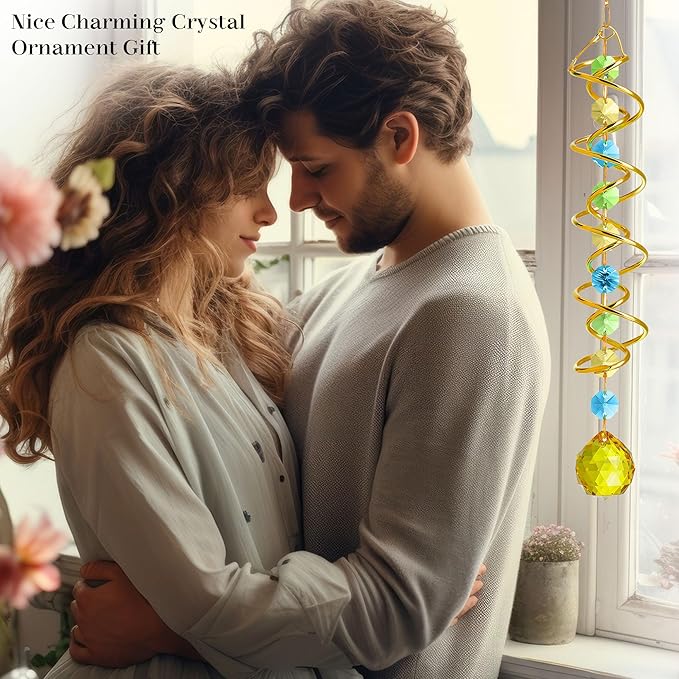 - Vibrant Yellow Crystal Glass Ball: Adorned with a 1.18 inch yellow crystal glass ball, this crystal suncatcher adds a pop of enchantment to any garden or patio.You can also add a motor(not include) to let the spiral to spin ,while spiral tail rotating (it can’t spin by itself)