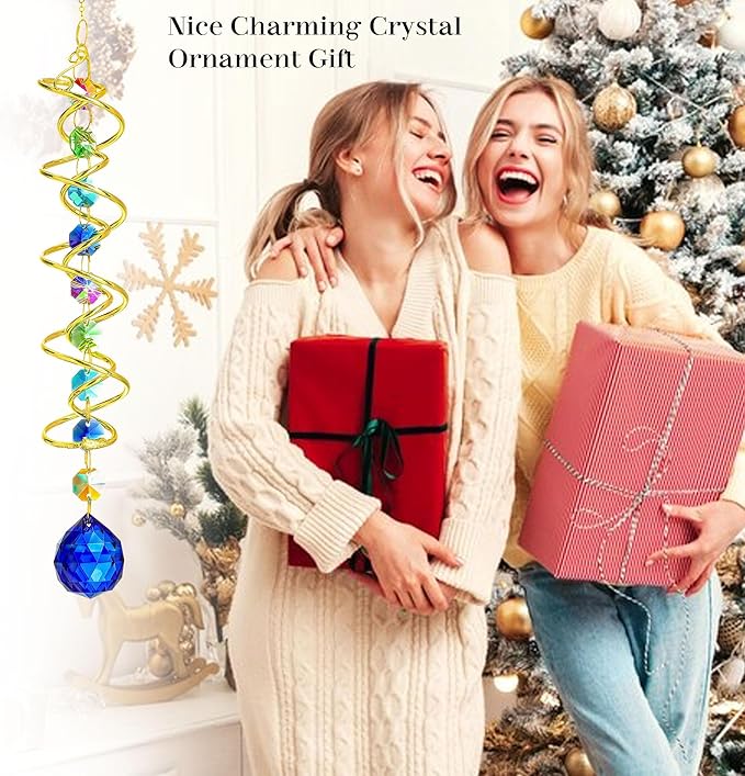 - Vibrant Blue Crystal Glass Ball: Adorned with a 1.18 inch blue crystal glass ball, this window suncatcher hanging adds a pop of enchantment to any garden or patio.You can also add a motor(not include) to let the spiral to spin ,while spiral tail rotating (it can’t spin by itself)