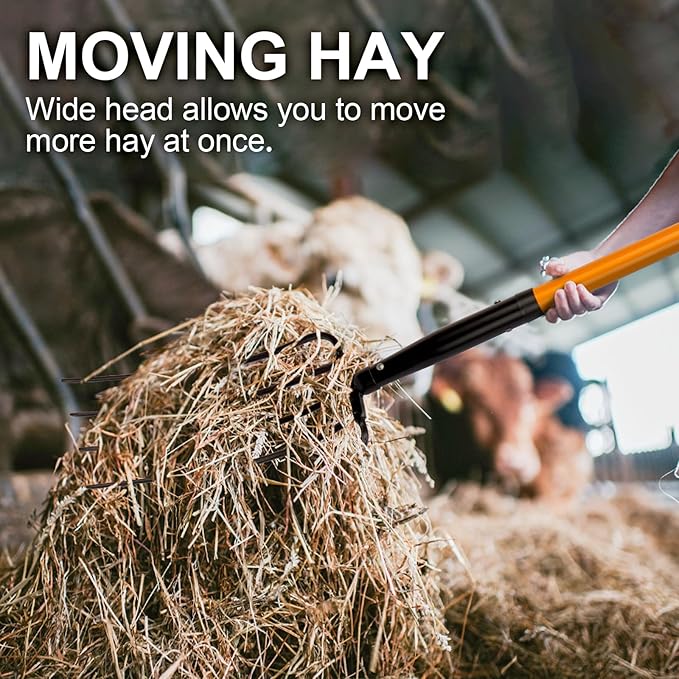 - Professional 5 Tine Pitchfork: The pitch fork can be used to move hay, manure, compost, and more, making it ideal for gardening in the yard or on the farm. The pitchfork for mulch head is 8.26 inches wide, and the wide head allows you to carry more hay at a time, helping you to be more productive!