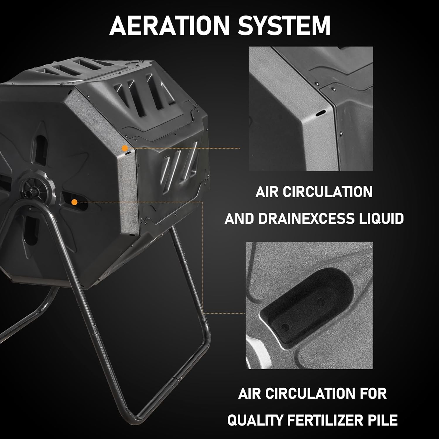 - Dual-Bin Design: The double bin design presents a unique take on the continuous-use composting concept. Two individual chambers permit one side to complete composting while the other remains available for fresh waste addition. Regular rotation of the two sides generates a continuous flow of nutrient-rich compost.