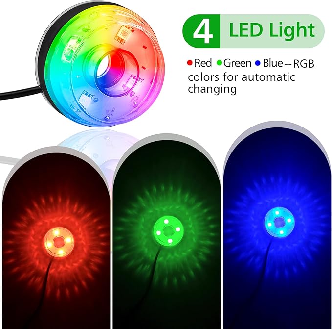 - 【Colourful Pond Fountains Pump】This 100% small pond fountain pump uses super bright colourful energy saving Led lights in 3 colours (red, green, blue). The water pump can provide amazing daytime decoration and nighttime lighting effects for outdoor fountains, pet fountains, gardens, fish tanks, small water features, ponds, aquariums, statues and more. The water pump and LED lights are completely waterproof, can work continuously for 24 hours, no need to control, automatic colour change. ❤Note: there is only one red, green and blue color cycle change mode, can not be fixed one color.❤