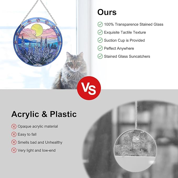 - 【100% Handcrafted Elegance】 - Each piece is meticulously crafted by skilled artisans, ensuring a unique and elegant design that adds a touch of sophistication to any window. Stained glass window hangings is made of 100% American glass, not acrylic/plastic/metal, etc material.