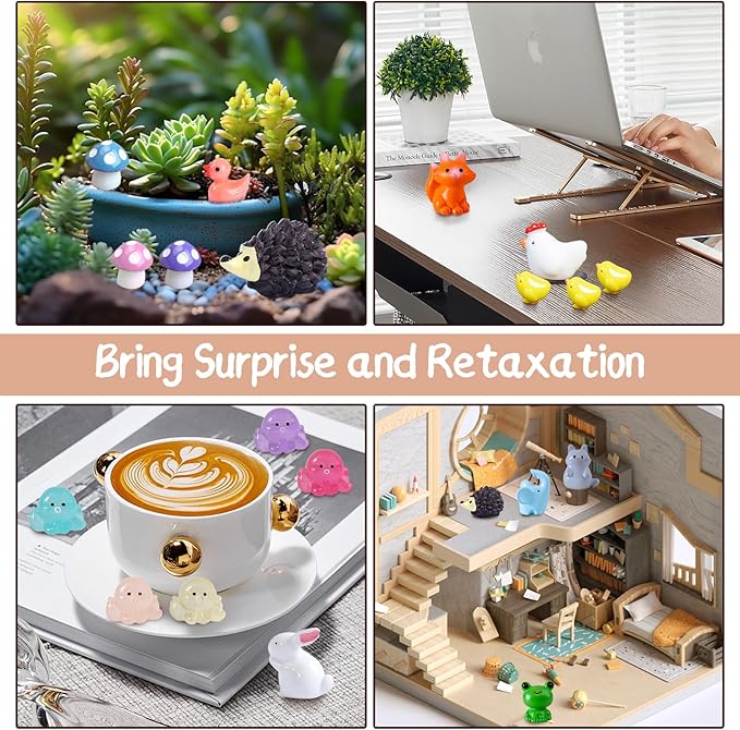 - 🐤【Package Includes】: You will receive 150 super cute mini resin animal and plant models, abundant in number and diverse in shapes. These adorable miniature animals and garden accessories can perfectly decorate your miniature garden or miniature dollhouse.