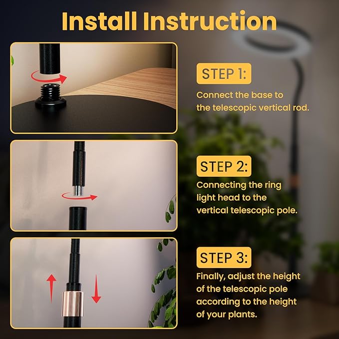 - This plant grow light is equipped with a metal base to ensure stable standing. The sponge pad at the bottom can prevent the desk lamp from tipping over and scratching the table. Easy to install, practical in design, it is the perfect solution for indoor desktop plants.