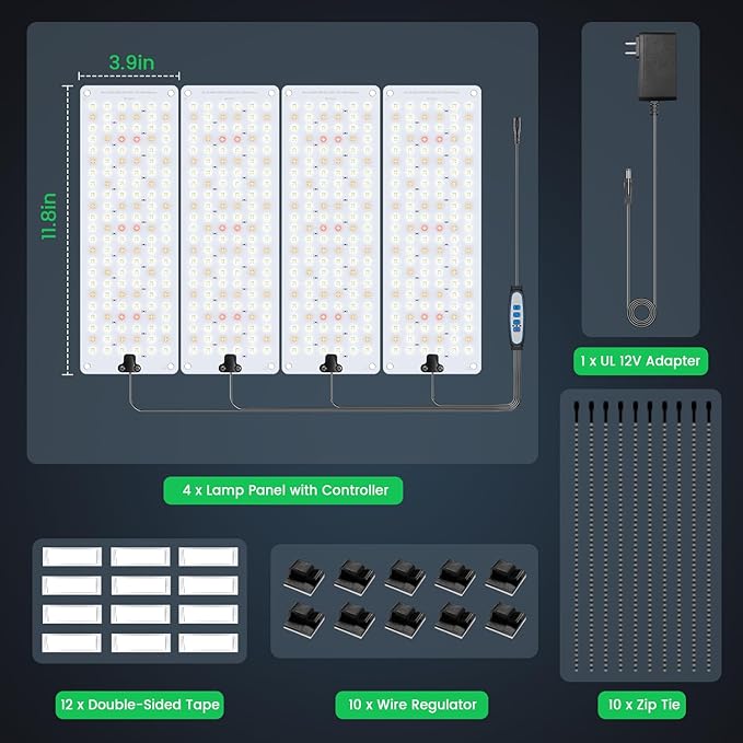 - [Full Spectrum]: This 4Panel full spectrum grow lights have 552 LEDs. emitting wavelengths from 380nm to 800nm, the spectrum is similar to natural light with higher PAR output. 3 Spectrums: 6000K Cool White, 3500K Warm Light, 5000K Full Spectrum. Suitable for all plants at all stages of growth