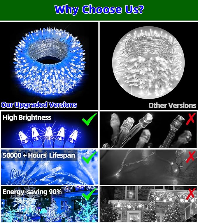 - Energy-Efficient and Safe : Designed with low voltage, these LED christmas lights are safe and energy-efficient, perfect for long-term use indoors or outdoors. They stay cool to the touch, making them ideal for homes with kids and pets. Enjoy a bright, glowing holiday display without the worry of high electricity bills or overheating, keeping your celebrations safe and sustainable