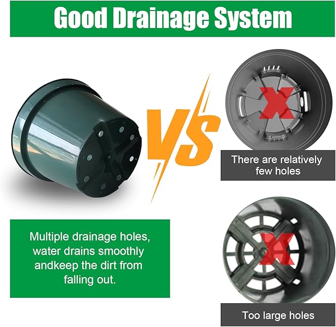 - 【Enhanced Survival Rate】The bottom of plastic pots is equipped with 8 large drainage holes. Which theses can discharge excess water well, improve the bottom ventilation and drainage. As well as improving the survival rate of seedings and plants.