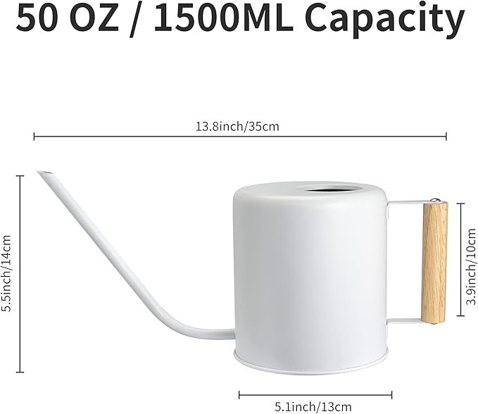1.5 Liter Watering Can for Indoor Plants, House Plants, Flower Watering, Outdoor Plants - Small Metal Watering Can with Long Spout (White)