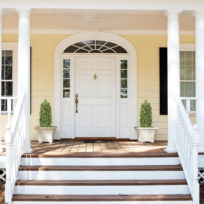 - UV-Resistant & Weatherproof: Designed as durable faux plants outdoor, these artificial topiary for outdoors withstand sunlight, rain, and wind, keeping their vibrant green color year-round
