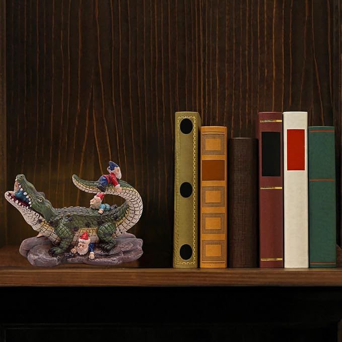 - Ideal for those who appreciate unique and quirky decorations, this gnome and alligator duo will enchant guests and family members alike.