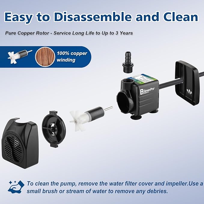 - Wide Range of Applications: This is a high-performance, energy-efficient pump and is well-designed for use in fish tanks, fountains, hydroponic systems, irrigation systems, etc