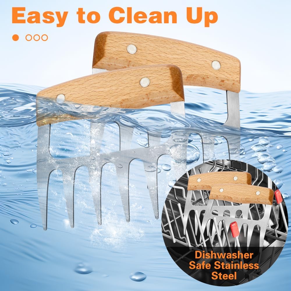 - Safe Design: Our chicken shredder claw provides a safe and secure grip while managing the super-sharp shredding blades. The metal claws crafted from stainless stain and heat-resistant. These shredding claws are designed for easy cleaning and can withstand high temperatures, ensuring they remain functional and durable even during the hottest BBQ sessions.