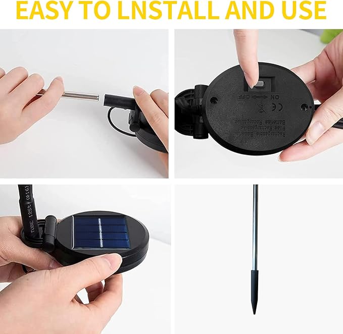 - EASY TO USE:No cables or plugs needed, simply plug in solar lights in your garden,turn on the switch,and enjoy the most beautiful solar decorative lights. These solar lights are perfect for garden,door,pathway,backyard decoration,and much more