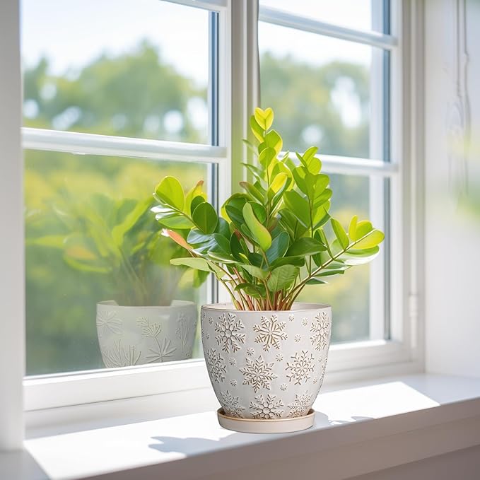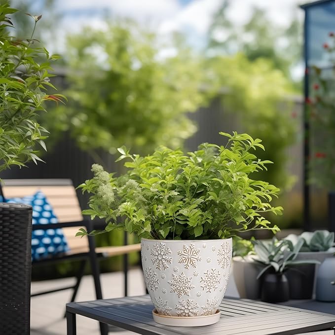 - Stylish Appearance: Our ceramic plant pot has a white main colour and a beautiful embossed snowflakes pattern on the surface, elegant appearance making it ideal for home decor, garden decor and office decor