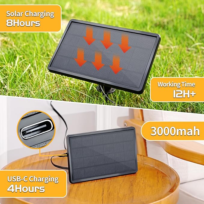 - Enhanced Solar Panel: Our solar light strings feature a large 3000mAh solar panel that can be fully charged in just 8 hours of sunlight, ensuring a continuous 12 hours of bright illumination