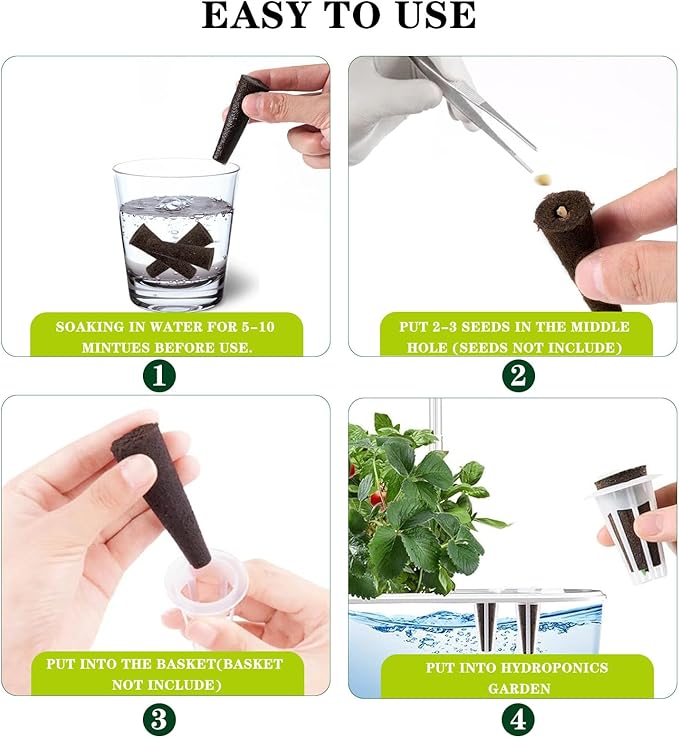 - Optimized for Growth: Each seed pod features a small hole at the top to keep seeds securely in place, preventing them from sinking into the water. The seed starter kit are designed with small grooves around the sides to promote water circulation and maintain optimal humidity levels, ensuring seeds receive the moisture they need for successful germination. These grow sponges are easy to replace—simply remove the old one and insert the new sponge after soaking it for 3-5 minutes.