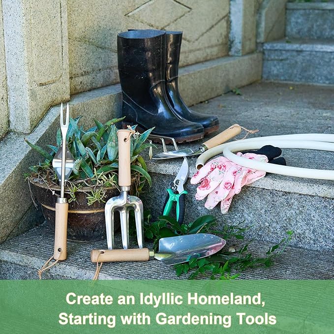 - 【Refined and Comfortable Wooden Handle】These tools are equipped with non-slip wooden handles that are free of wood splinters for a comfortable grip. They are ergonomically designed for ease of use. Each tool also comes with a hanging hole for convenient storage.