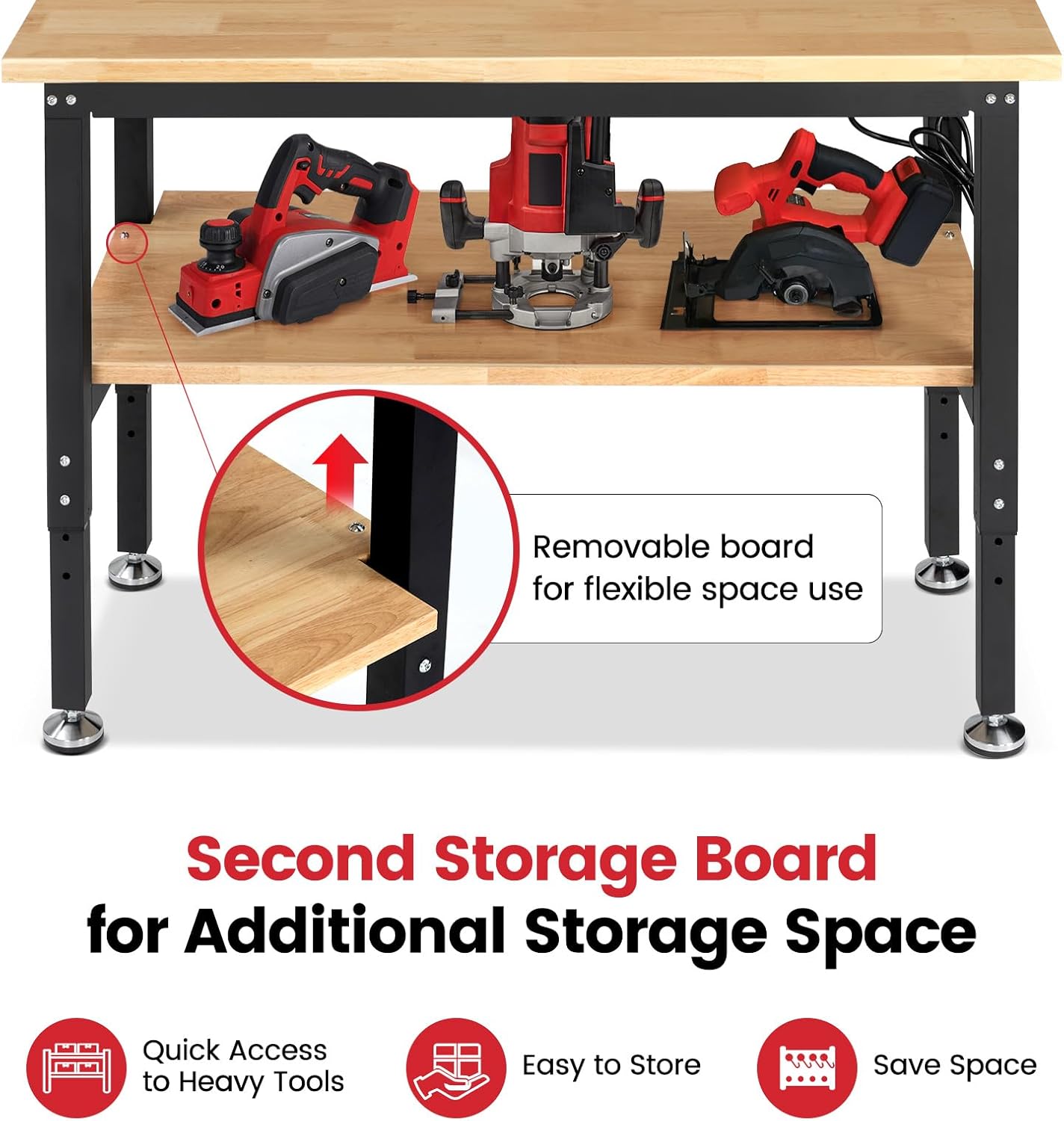 - Second Storage Compartment:Under table shelf, load-bearing 500LBS, greatly increase storage space. Adjustable Height:31-1/2~39-1/2"H. Size:48x20" Suit for for Shop Woodworking, Office, Home, Commercial.