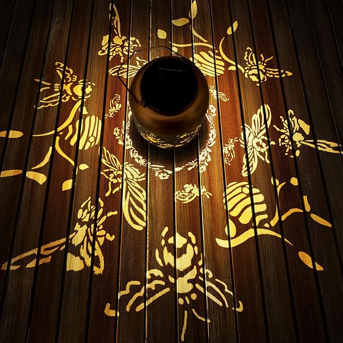 - Mothers Day Gifts for Women: The retro appearance, with gold copper color and hollow out metal veneer, the solar lantern casts bright and warm light in darkness, accompanied by gorgeous and graceful bee patterns