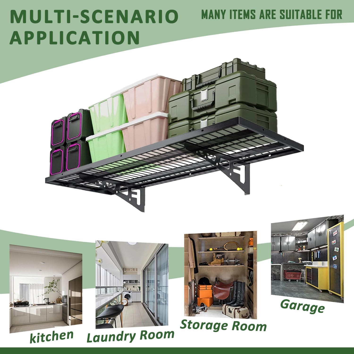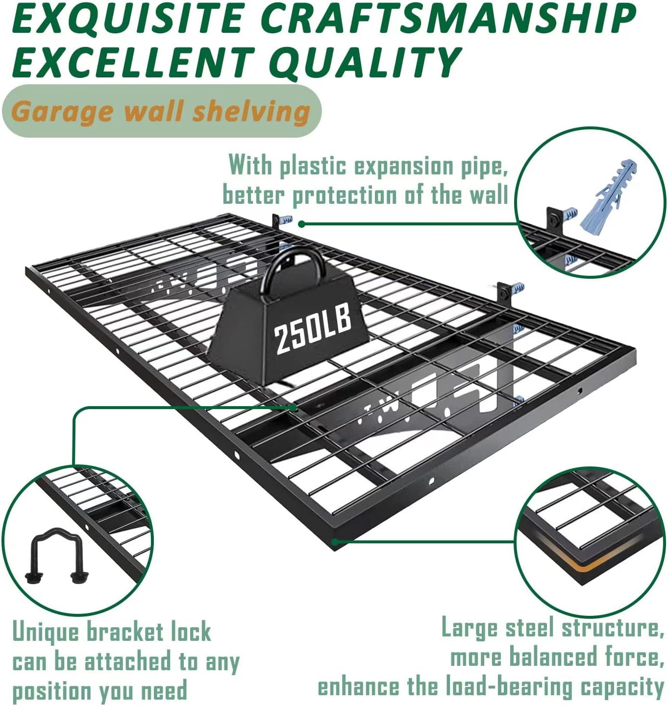 - UNIQUE DESIGN: The surface of the garage wall shelving is made of ‘high temperature powder coating’ process, which makes the surface smoother and more durable, and the edges are also wrapped to avoid scratches.