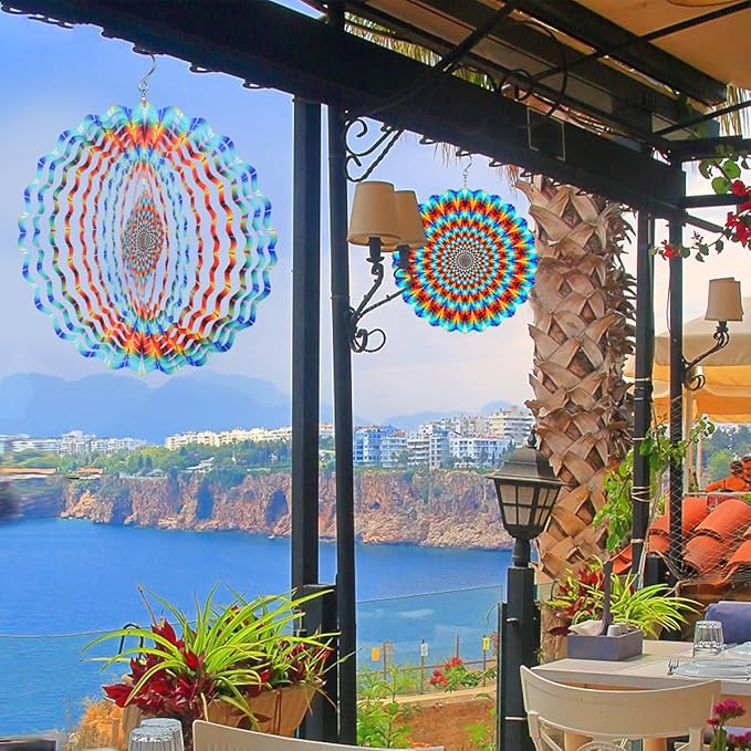 - Vibrant Colors: Wind spinner features a mesmerizing rainbow pattern that brightens any outdoor space with its vibrant colors