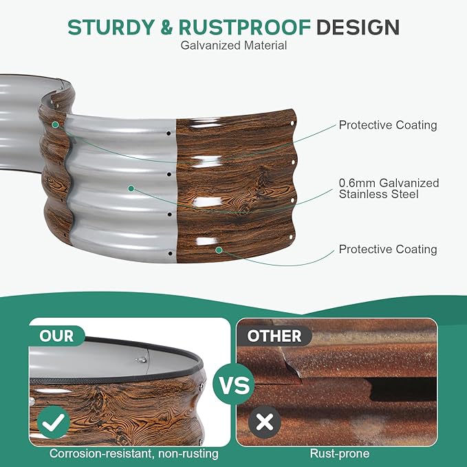 - 【 Durable and Long-lasting 】 BIRDSINYARD outdoor raised garden bed is made from 0.7mm thick galvanized steel,featuring a rust-resistant and corrosion-resistant coating.Garden planter effectively withstands humid weather and harsh conditions, ensuring it won't easily warp or rust with long-term use.