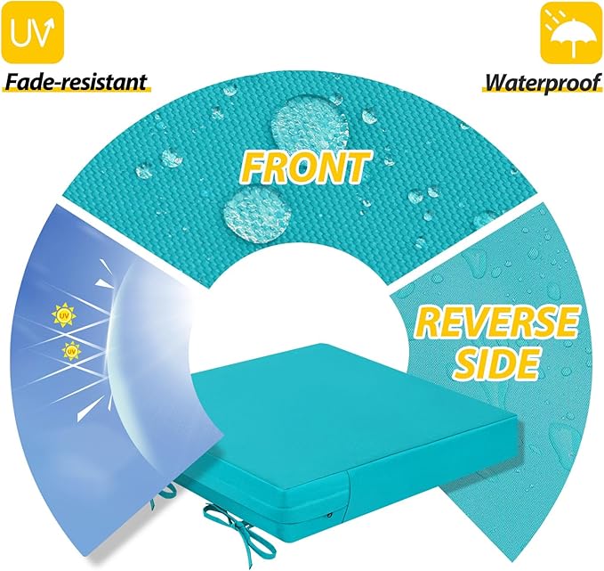 AAAAAcessories Outdoor Seat Cushions for Chairs, Waterproof, Fade-Resistant Patio Furniture Replacement Cushions, 18" x 18" x 2", Set of 2, Turquoise