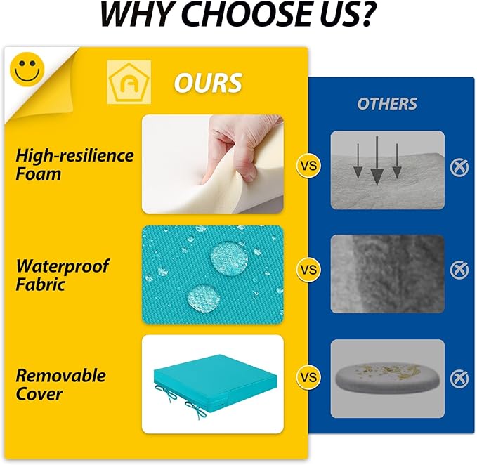 - Wide Use & Tips: These outdoor dining chair cushions fit pools, patios, balconies, decks, backyards, and gazebos. Foam inserts and covers are packed separately in bags and placed in one box—check all parts. Easy assembly required