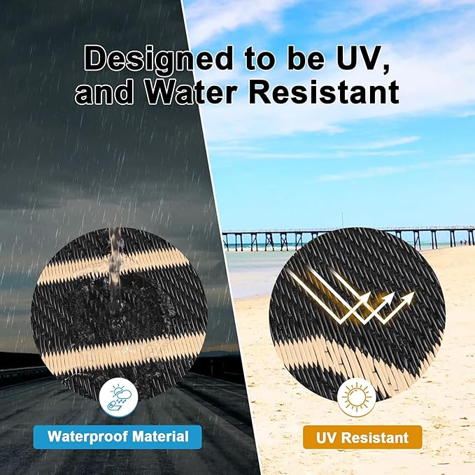 • Premium Material Outdoor Doormat: This reversible outdoor doormats are made from high quality recycled plastic straws and be woven tightly, durable enough, no fade, water resistant. It's soft and comfortable to walk on barefoot.Plus, the high-end UV coating and edge heat treatment technology prevent fading and sun damage without worrying about wear and tear.