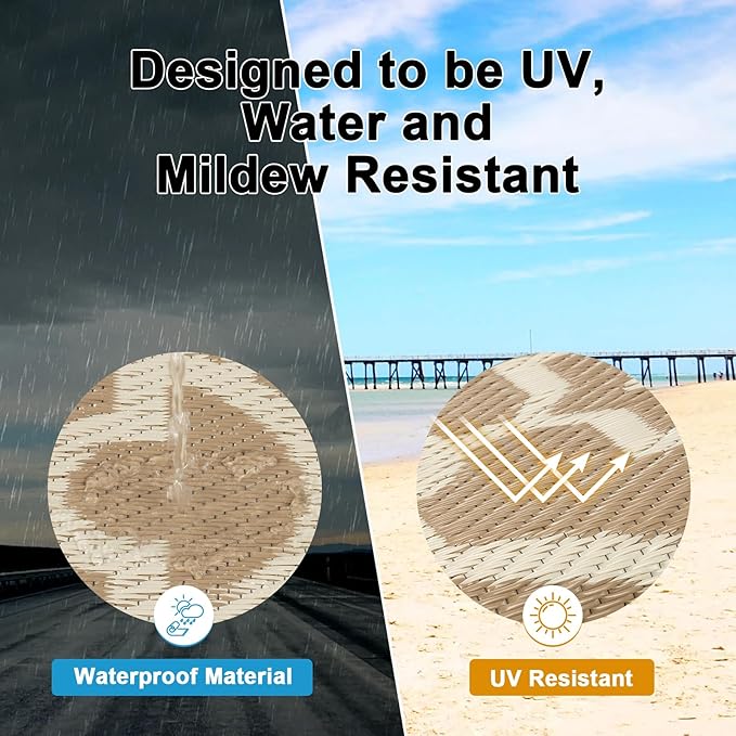 • Lightweight & Portable Patio Rugs: The lightweight foldable construction enables ultra-portability, allowing our outdoor area rug to tag along on all your adventures, from campouts in the wilderness to lawn parties in the park, without being a burden.