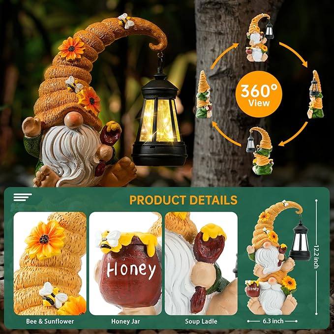 - Versatile and Easy to Use: The gnome and lantern can be used together or separately, offering flexible decoration options. Simply turn on the side button and place in direct sunlight for optimal performance. Perfect for enhancing any garden style.
