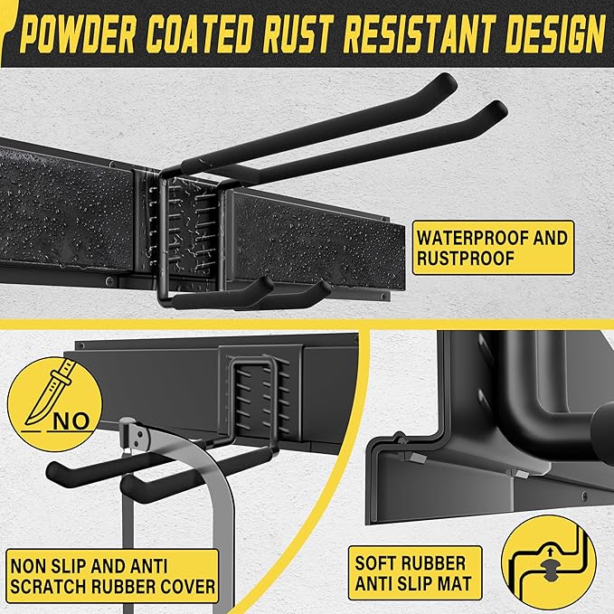 - VERSATILE TOOL RACK:Our Garage Storage System Isn't Just for Your Garage Tools;it’s Perfect for Arranging Garden Tools,Brooms,Hoses,and Even Sports Equipment Like Hockey Sticks And Ski Gear.This Multifunctional Storage Solution Maximizes Your Space.