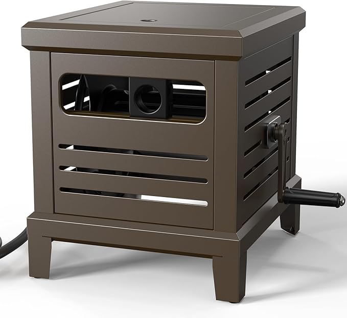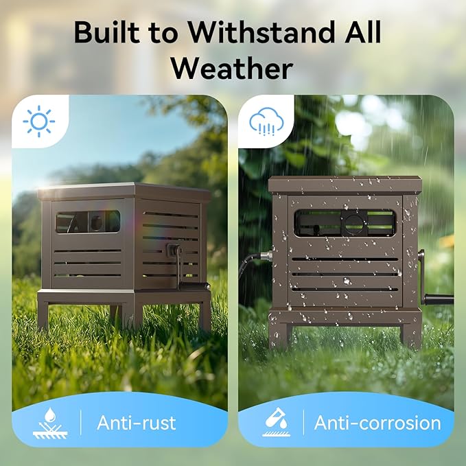 - Easy Winding & Tangle-Free Operation: This garden hose reel features a manual crank handle and hose guide system that prevents tangling and ensures smooth winding. The stable foot pedal keeps the hose reel box secure during use, perfect for organized and hassle-free storage