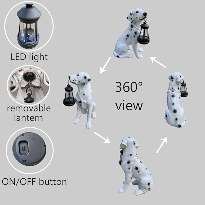 • 🐕Charming Dog Statue for Your Garden: Enhance your outdoor space with our Garden Statues Dog Solar Hanging Light. This lifelike dog statue adds a touch of personality to your garden or yard. With its simulated design and exquisite craftsmanship, it becomes the perfect decorative piece for any garden entrance or courtyard.